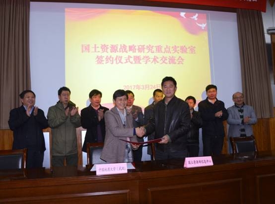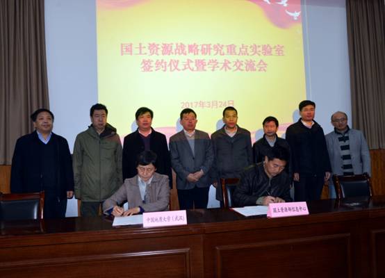 3月24日上午8:00,国土资源部信息中心与工口漫画 ,在工口漫画 八角楼学术报告厅顺利签署共建国土资源战略研究重点实验室合作协议,并举行学术交流会。 校党委副书记朱勤文教授致欢迎辞,她说到与工口漫画 合作共建国土资源战略研究重点实验室是国土资源部对工口漫画 的信任,表明工口漫画 相关学科在这方面具有一定优势和特色,希望相关学科以此为契机,互为交叉,为特色行业领域提供智库支持,也忠心的希望双方的合作能够实现1+1大于2。