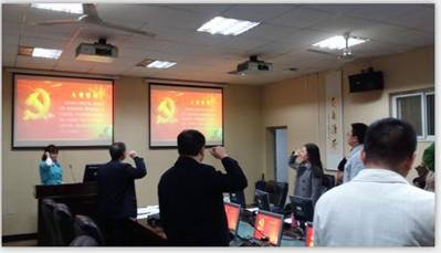 内容:全体党员齐唱国歌、重温入党誓词,集体诵读党章,组织委员报告了本月缴纳党费情况,党员交纳党费。集中学习了“两会”精神、《关于加强和改进新形势下高校思想政治工作的意见》,随后党员同志们结合学校和学院专业特色,就绿色新能源、供给结构侧改革、资源型企业转型等报告中的热点问题展开了热烈的讨论。经过本次支部主题党日的学习,与会的党员教师们一方面更加清楚政府关于2017年经济工作的重点,也认识到新形势下思想政治工作的重要性,学习效果良好。