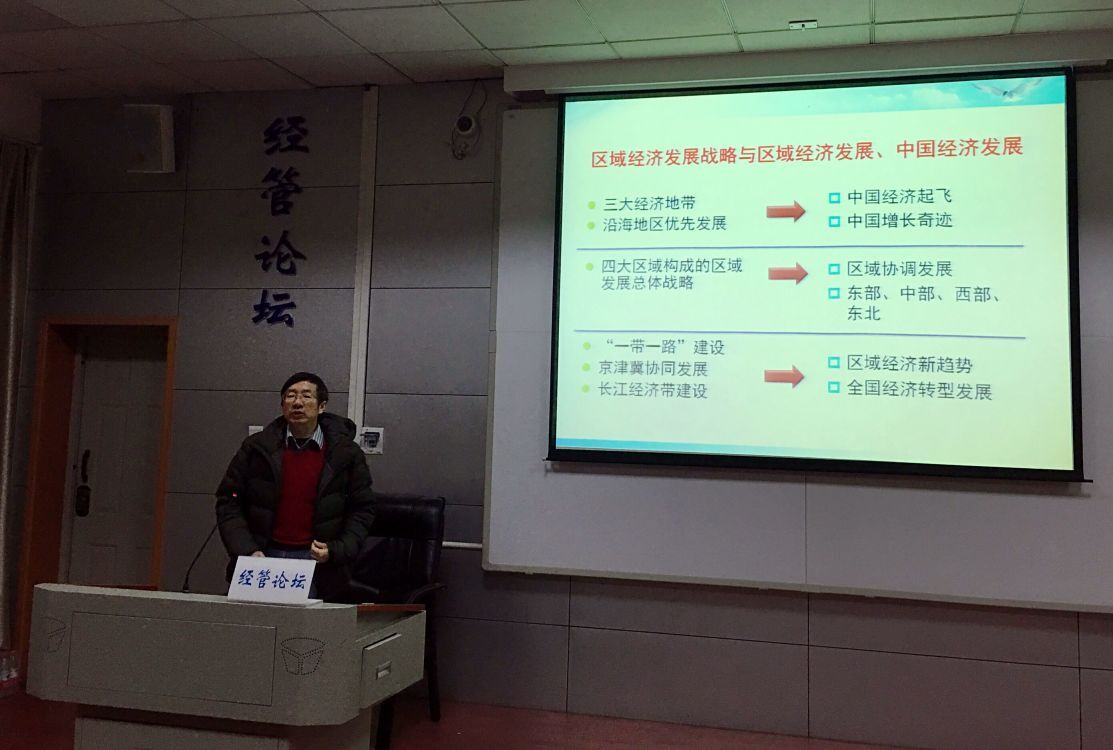 (通讯员:洪水峰)2018年1月4日上午9点30分,暨南大学著名教授、博士生导师覃成林教授在北三楼MBA中心208以“多级网络空间发展格局——中国区域经济新构想”为主题,为我院师生做了一场精彩的报告。工口漫画 部分教师、研究生、本科学生共40余人聆听了报告。报告会由工口漫画 副院长杨树旺教授主持。