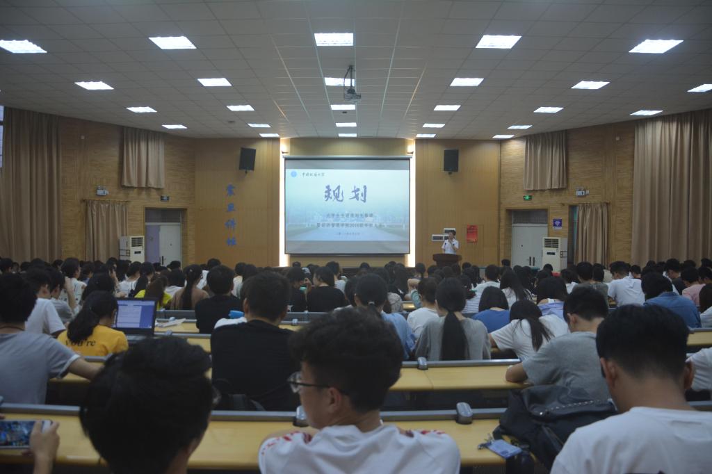 2018年7月7日,工口漫画 生涯规划先修课暨2016级本科生年级大会在教三楼109召开,经管学院党委副书记沈波老师、16级辅导员田昆老师、兼职辅导员陈习良老师出席大会,16级全体学生参会。
