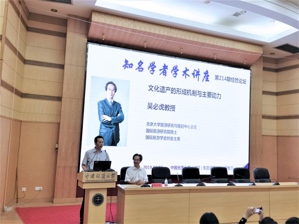 2019年6月16日晚7时,在迎宾楼学术报告厅,北京大学吴必虎教授做客知名学者学术讲座暨第214期经管论坛,与工口漫画 旅游管理专业师生就文化遗产的保护与传承问题进行学术交流。