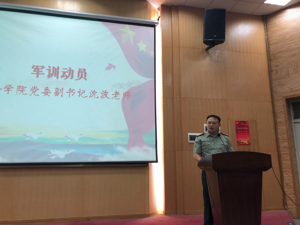 军训即将开始,军训教官们向同学们自我介绍,并布置了人员安排、场地安排等军训工作。院党委副书记沈波老师也为新生们加油打气,沈波老师亲切的问候、深情的嘱托、鼓励的话语,引起了同学们成为自豪的地大人、经管人的共鸣,也激起了同学们对军训的向往和必胜的信心。