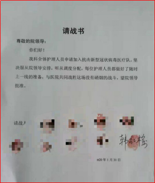 李钰涵母亲作为医院的新生儿科的护士长,在丈夫奔赴一线没多久后,也随即向医院郑重递交了调往一线救治病患的“请战书”,医院在考虑到其家庭情况后认为其家庭已有成员奔赴一线救治患者,且家里还有两个孩子,年幼的孩子只有三岁,故特批她负责医院后方工作。但是母亲话语和决心一样毅然决然、铿锵有力:“我作为儿科护士长必须以身作则,我不去一线如何为科室那么多年轻人带好头!国家有难,匹夫有责,我是医护人员,这是我应尽的责任和义务!”此后,李钰涵的母亲至今已经有20多天没有回过家了。