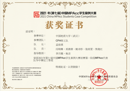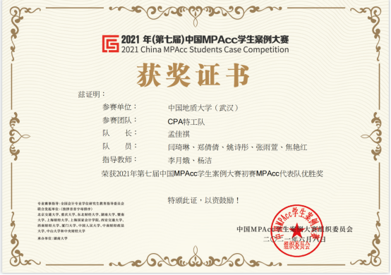 (通讯员:孟佳祺)6月6日,第七届全国MPAcc案例大赛落下帷幕。本次大赛分东北、华北、华东、华南、华中、西北、西南七大赛区,共2882个MPAcc学员团队授权参赛。在此次比赛中,工口漫画 MPAcc团队在竞争激烈的华中赛区取得了较好成绩。其中,以李月娥教授、杨洁教授为指导老师,孟佳祺同学为组长的“CPA特工队”在大赛第一阶段取得华中赛区第6名成绩,荣获华中赛区三等奖;大赛第二阶段取得了第27名的成绩,荣获全国优胜奖。