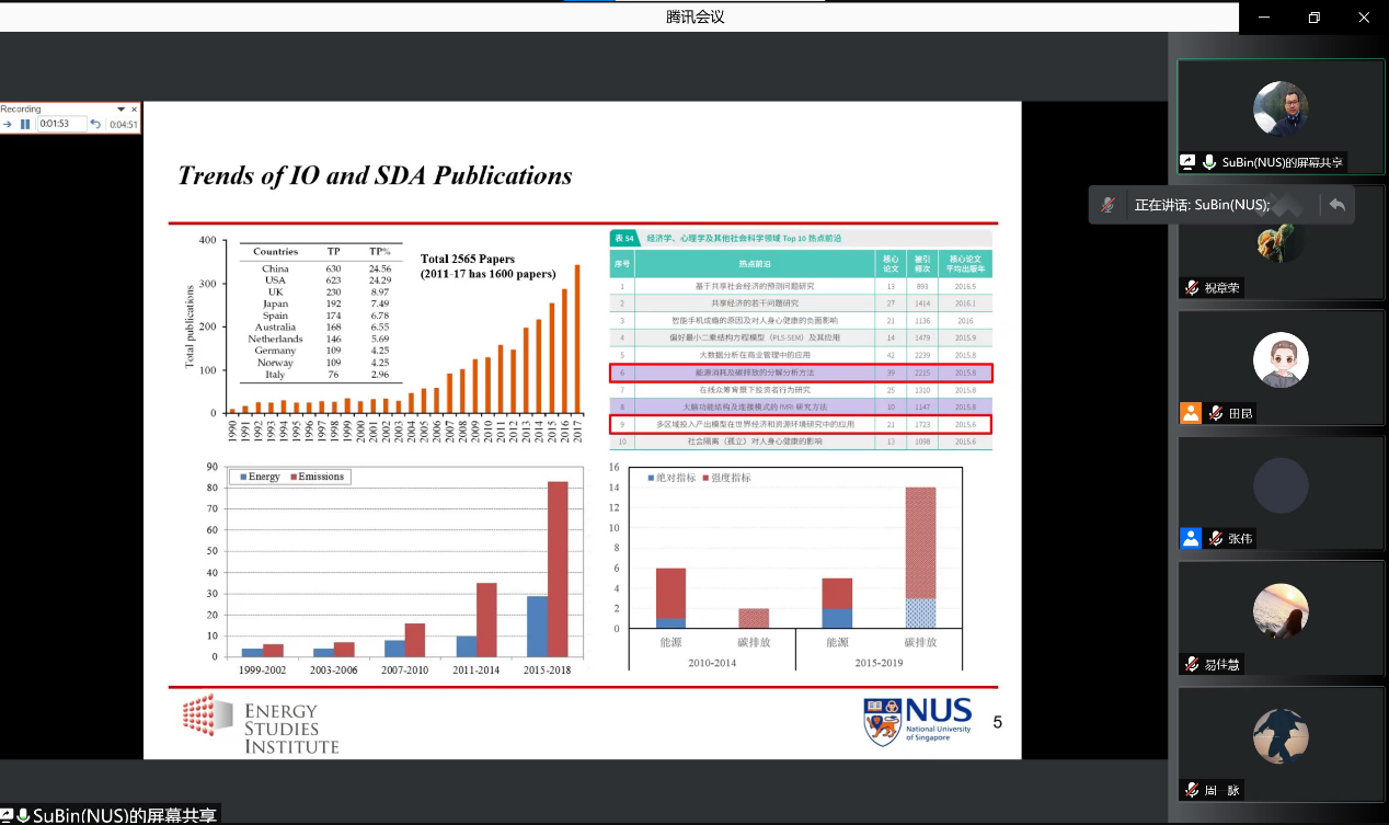 新加坡国立大学能源研究所高级研究员苏斌教授作为主旨演讲嘉宾,以《从生产和需求的角度衡量能源/碳排放强度》为主题,分别从生产端和需求端综合阐述了能源/碳排放强度的测算方法。苏斌教授指出,从生产端来衡量能源/碳排放强度会出现一些不容易理解的现象,以能源强度为例,是否能源强度低的行业,就一定为绿色行业?因此,仅仅考察生产端是不够的,为研究其内在运行机理,需要思考更深一步的内容,从需求端来考察能源/碳排放强度很有必要。他指出,与传统的生产视角下的AI定义相比,AEI的度量可以从需求视角解释不同需求类别对排放和附加值的相对贡献。对一个国家以及区域来说,从需求端来考察能源/碳排放强度,可以看出哪个行业对减排的贡献度;同时,也可以看出一个行业的潜在影响。