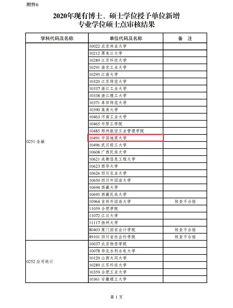 答:中国地质大学金融专业硕士点是2021年经国务院学位委员会审核通过,最快于2021年秋季招生。