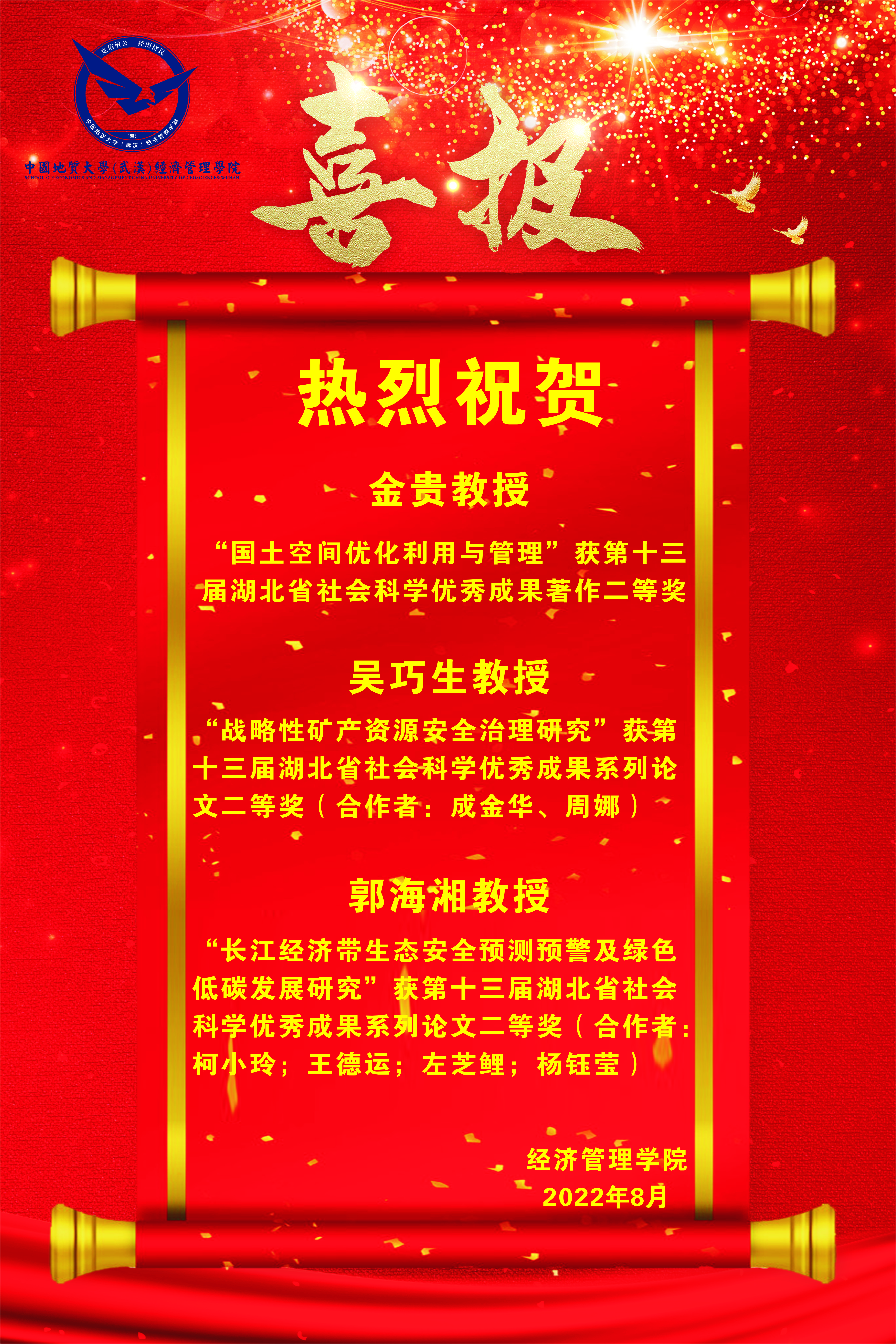 喜报!热烈祝贺我院3人获第十三届湖北省社会科学优秀成果二等奖