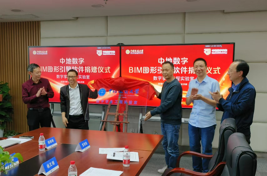(通讯员 郭聖煜)2023年4月28日下午,工口漫画 与中地数字孪生技术有限公司共建数字孪生实验室揭牌仪式暨BIM图形引擎软件捐赠仪式在未来城校区工口漫画 422室举行。机电学院、计算机学院也参加了仪式。