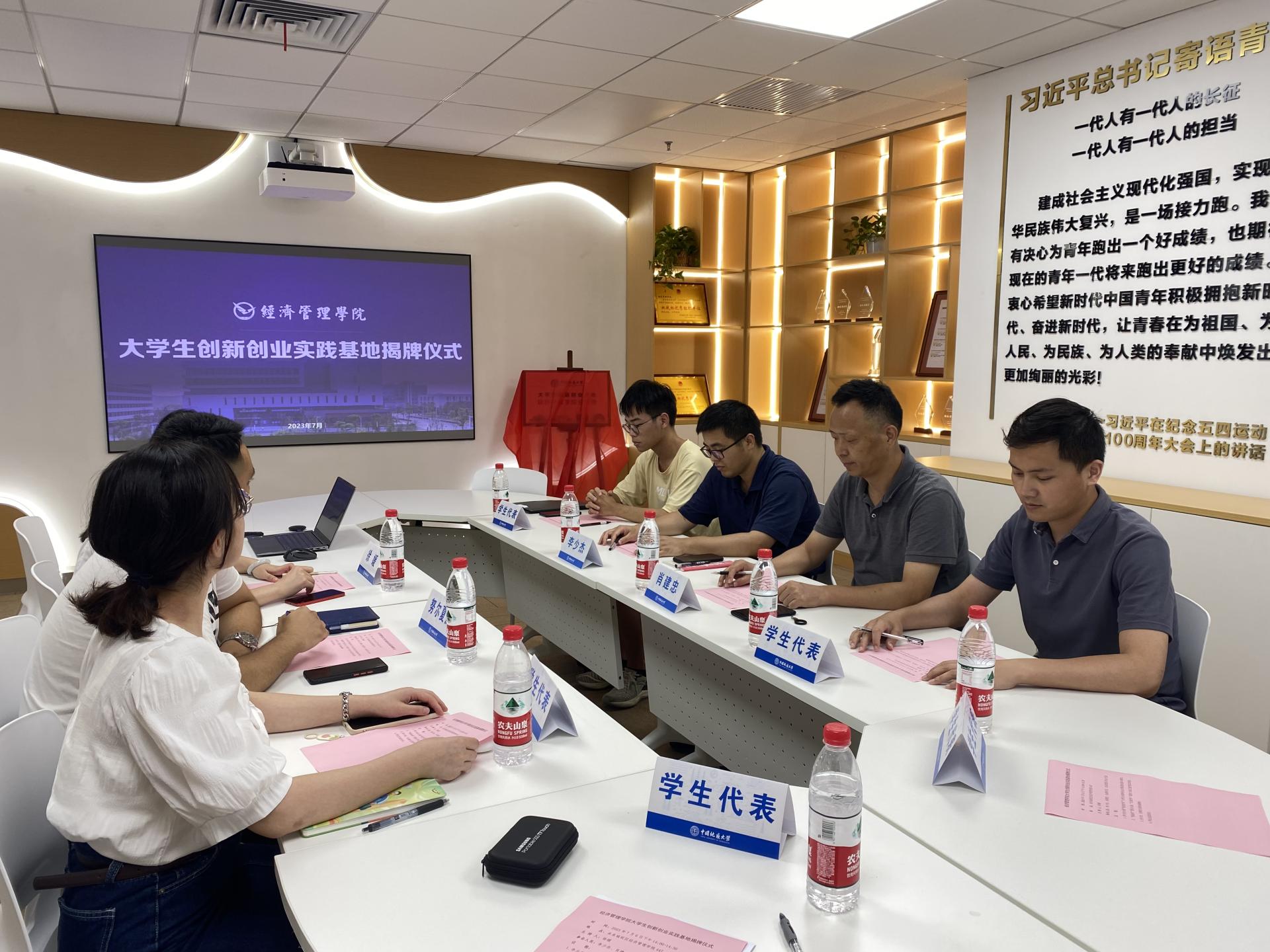 李少杰副书记介绍“经创空间”大学生创新创业实践基地的基本情况。他表示,学院高度重视学生创新创业教育工作,近两年陆续出台《学科竞赛分类办法》《学生竞赛奖励资助办法》等政策支持学生参加创新创业竞赛。为传承创新创业成果,浓厚创新创业氛围,搭建师生交流的平台,改善学生团队备赛条件,学院精心设计并建成创新创业实践基地。希望以基地建成为契机,推进学院创新创业工作再上新台阶。