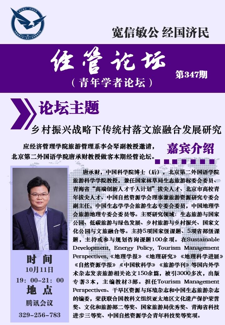 经管论坛(第347期)乡村振兴战略下传统村落文旅融合发展研究