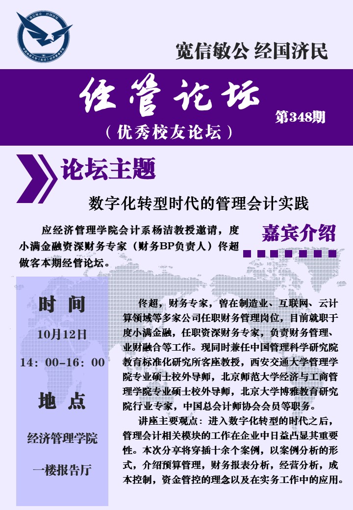经管论坛(第348期)数字化转型时代的管理会计实践