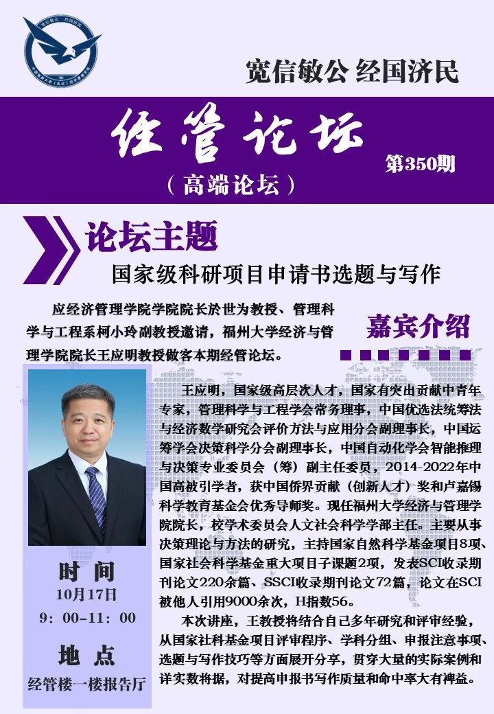 经管论坛(第350期)国家级科研项目申请书选题与写作