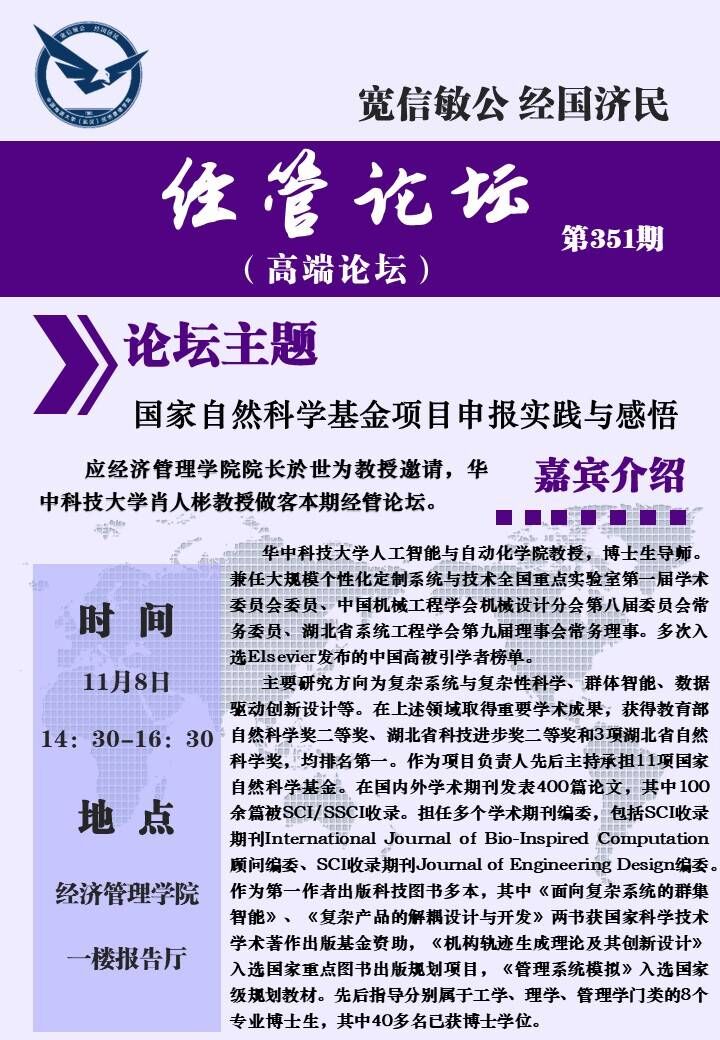 经管论坛(第351期)国家自然科学基金项目申报实践与感悟