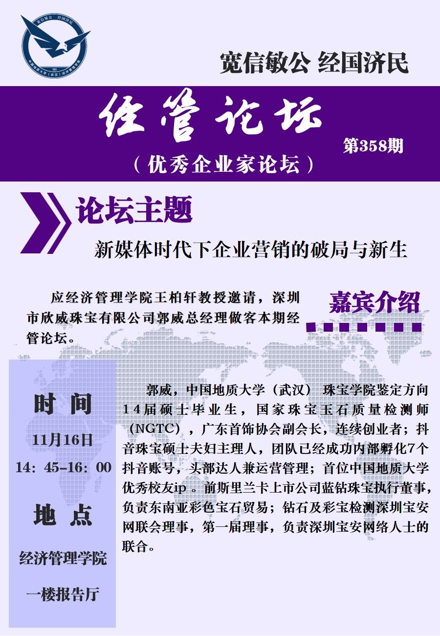 经管论坛(第358期)新媒体时代下企业营销的破局与新生