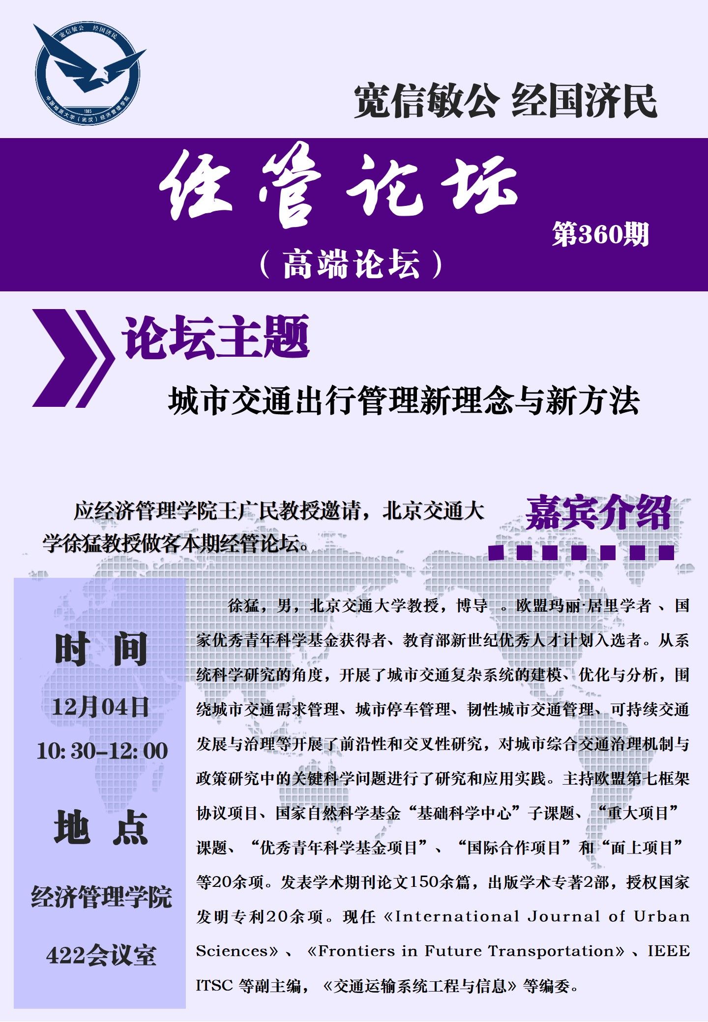 经管论坛(第360期)城市交通出行管理新理念与新方法