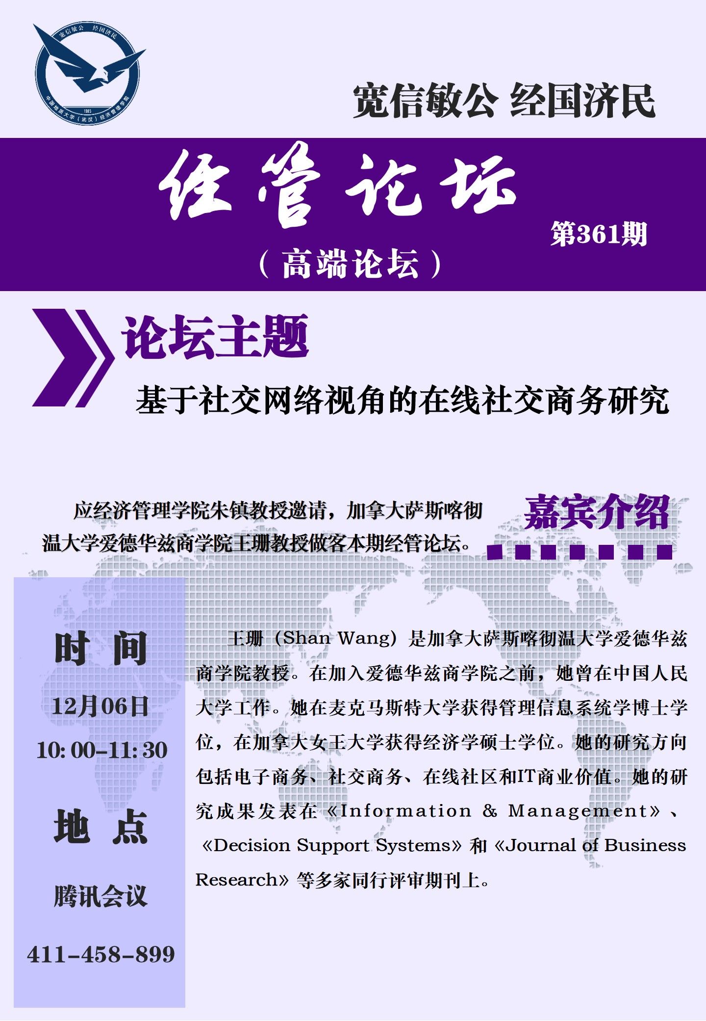 经管论坛(第361期)基于社交网络视角的在线社交商务研究