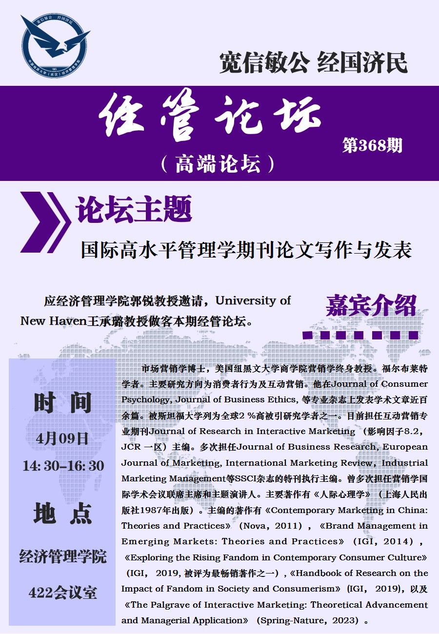 经管论坛(第368期)国际高水平管理学期刊论文写作与发表