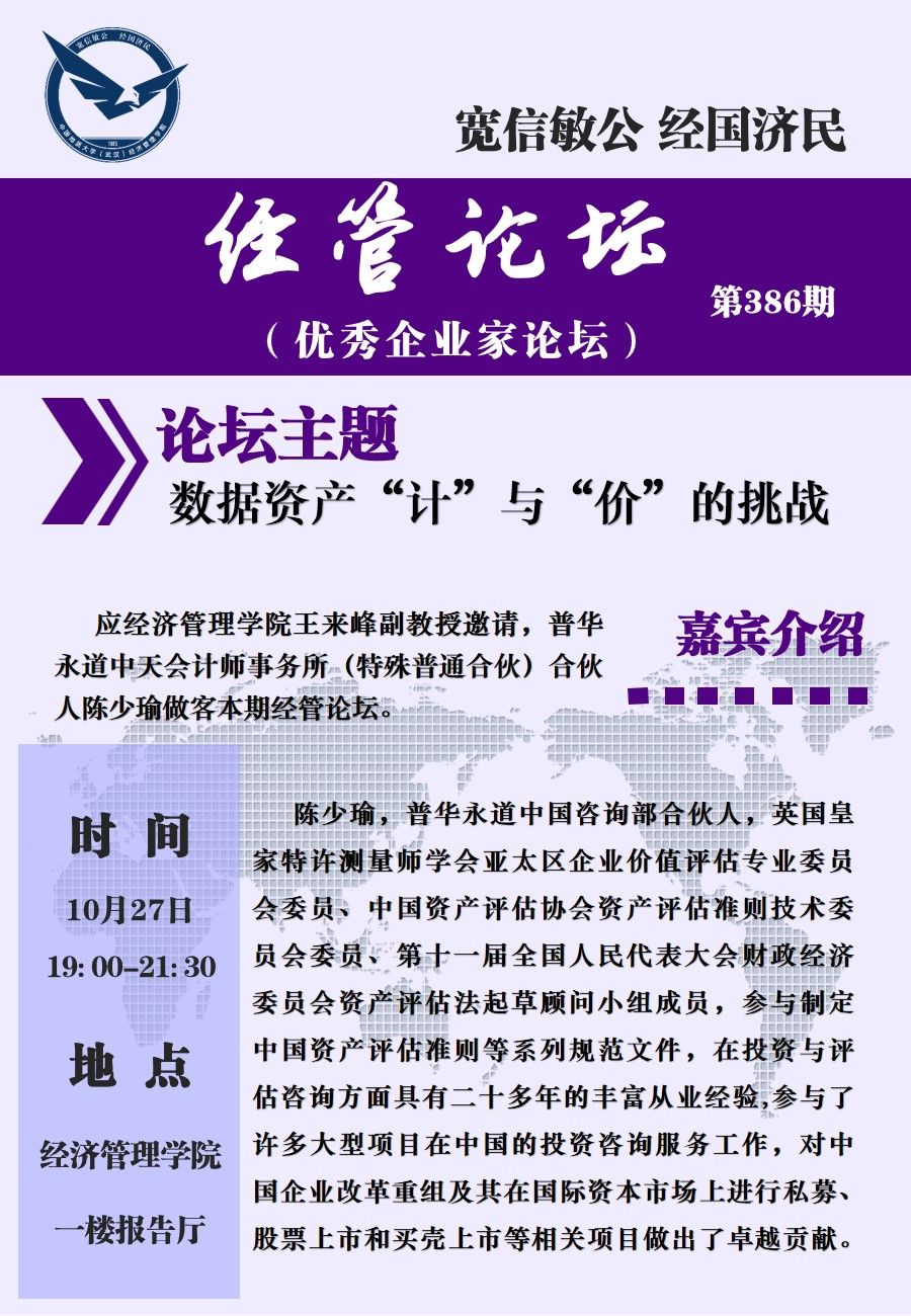经管论坛(第386期)数据资产“计”与“价”的挑战