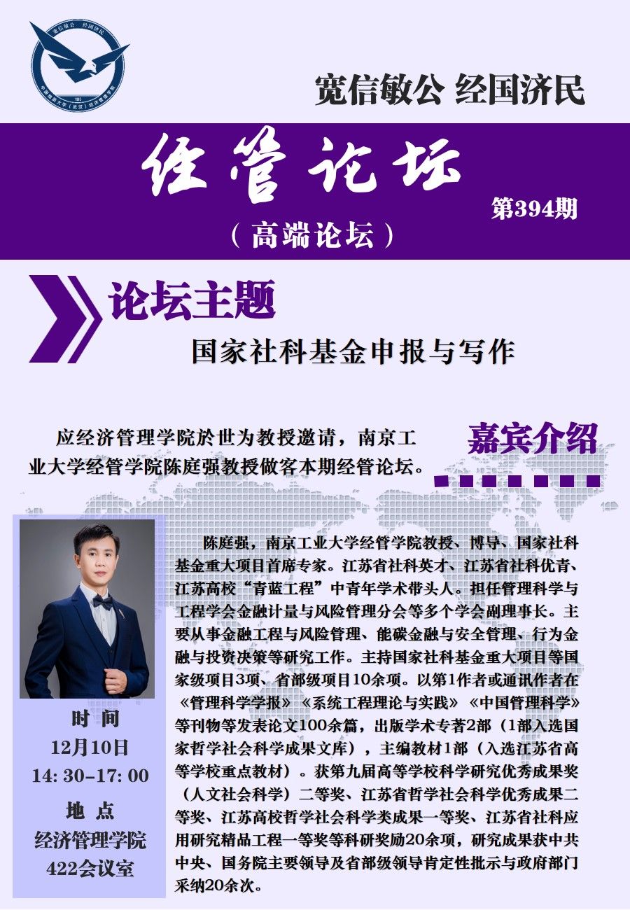经管论坛(第394期)【高端论坛】国家社科基金申报与写作