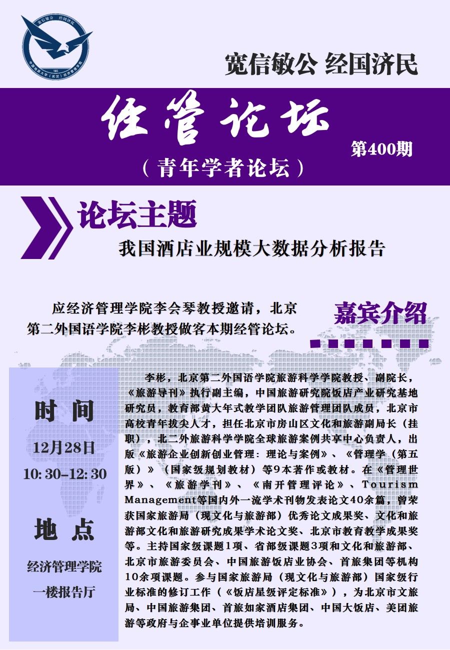 经管论坛(第400期)【青年学者论坛】我国酒店业规模大数据分析报告