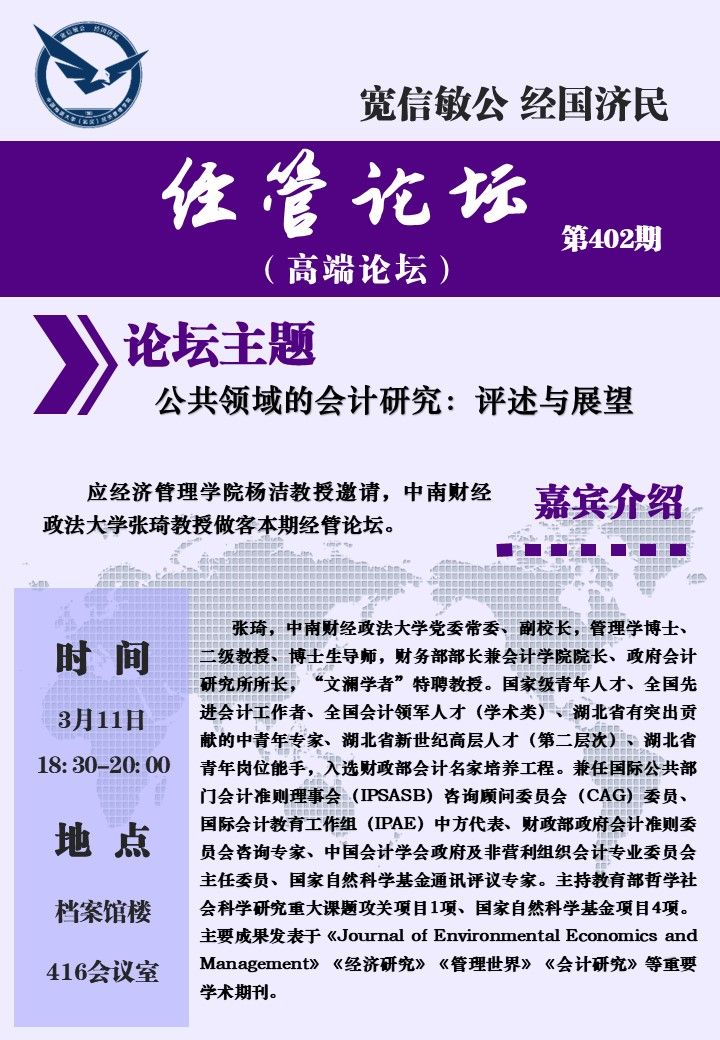 经管论坛(第402期)【高端论坛】公共领域的会计研究:评述与展望