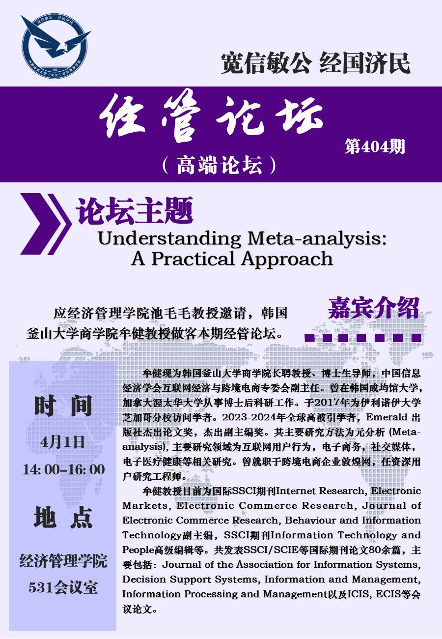 经管论坛(第404期)【高端论坛】Understanding Meta-analysis: A Practical Approach.