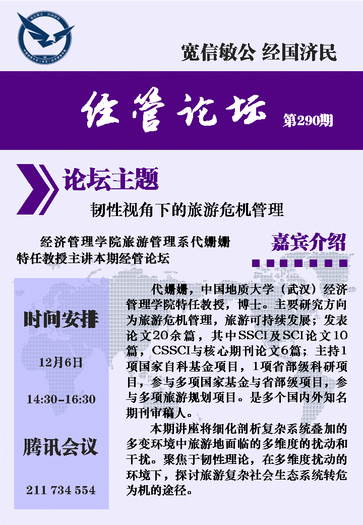 经管论坛(第290期)韧性视角下的旅游危机管理