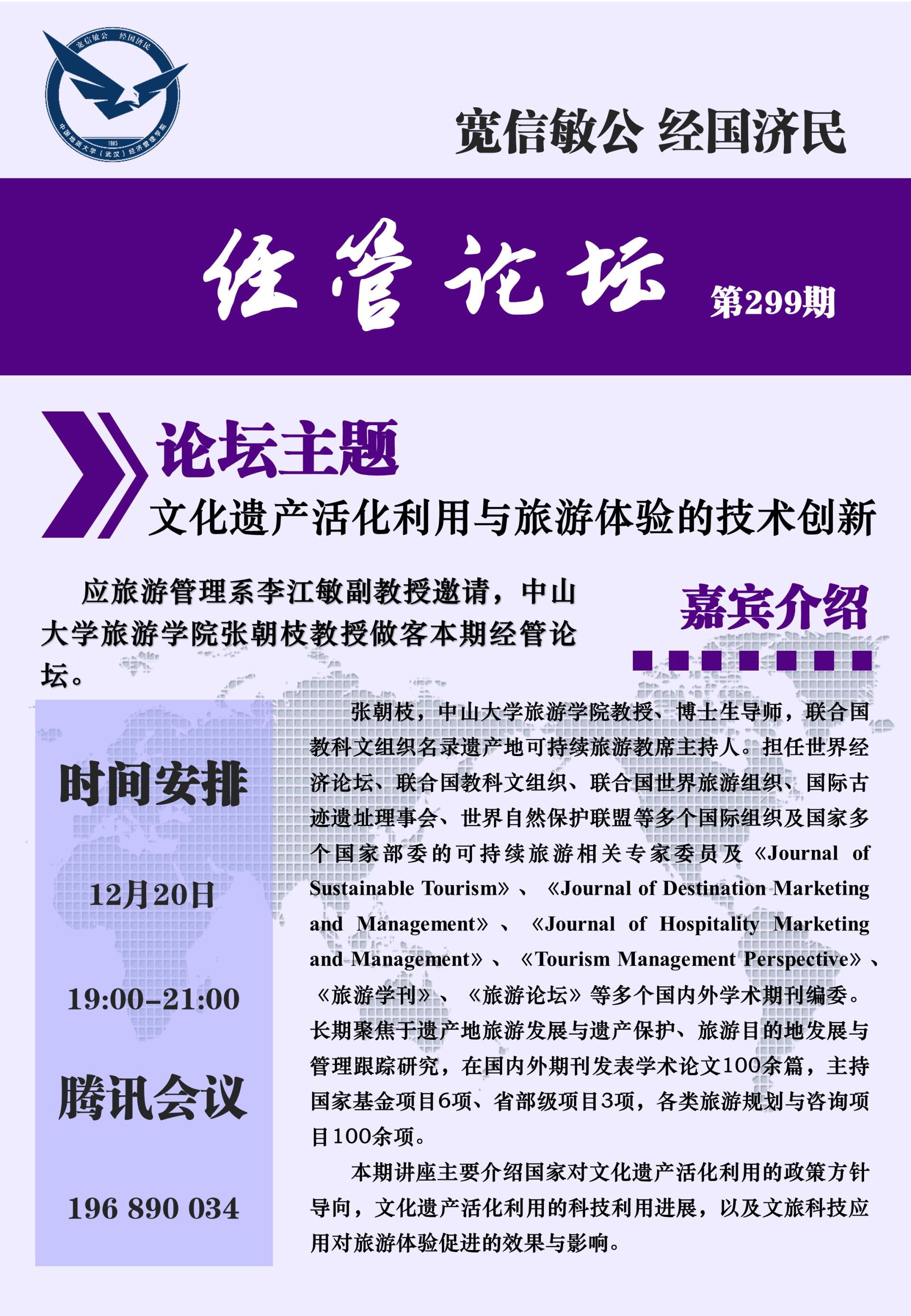 经管论坛(第299期)文化遗产活化利用与旅游体验的技术创新