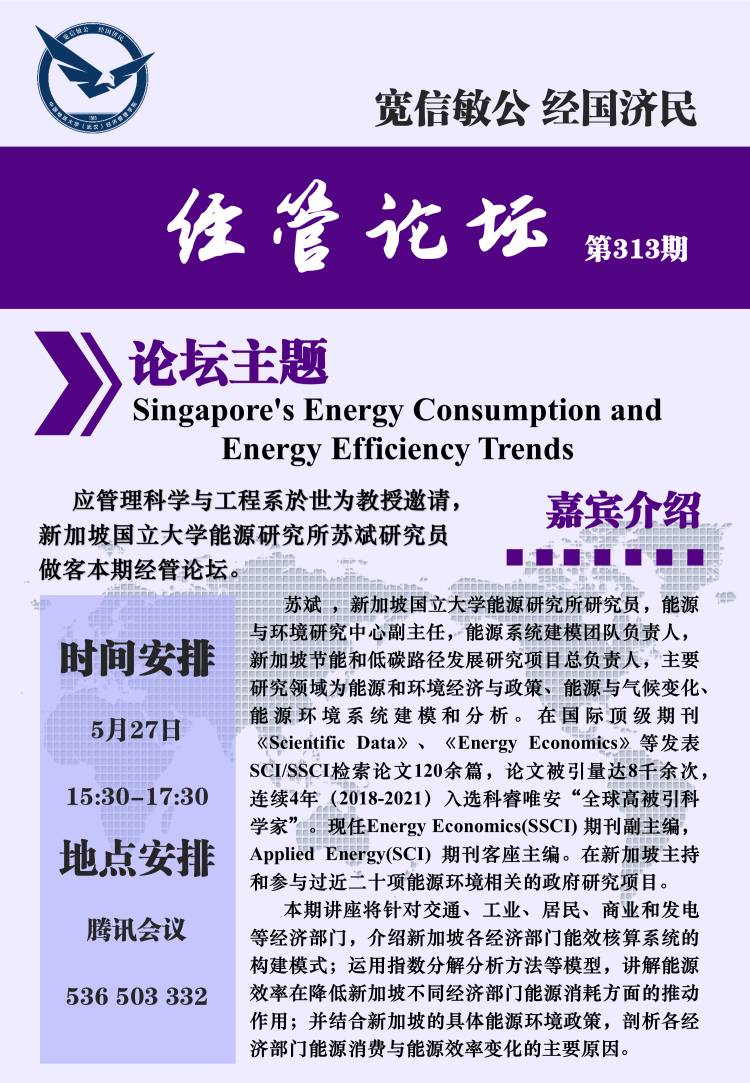 经管论坛(第313期)Singapore's Energy Consumption and Energy Efficiency Trends