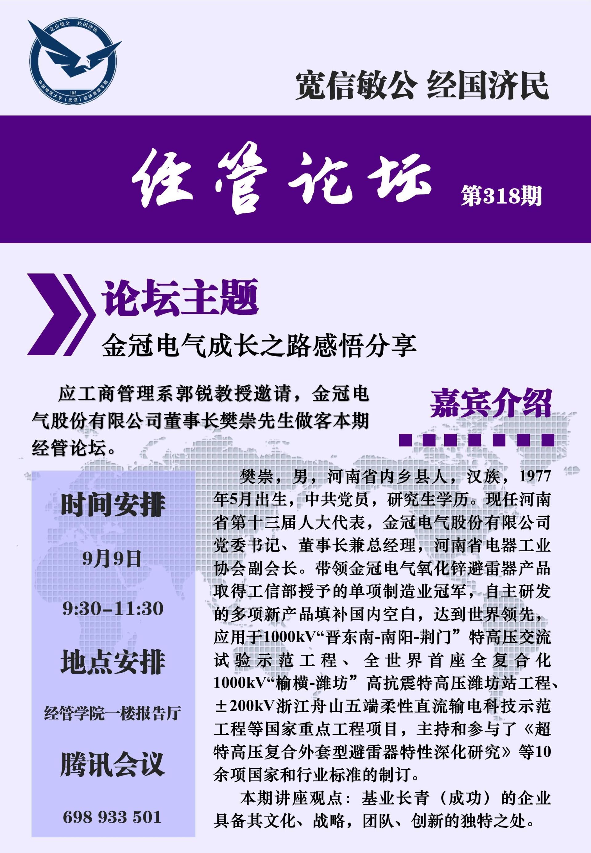 经管论坛(第318期) 金冠电气成长之路感悟分享