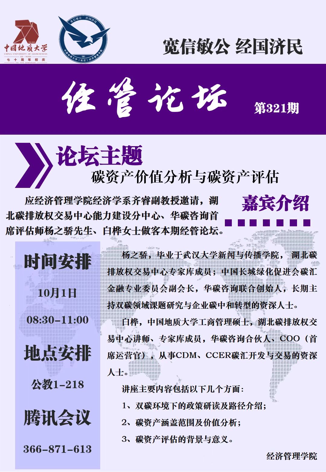 经管论坛(第321期)碳资产价值分析与碳资产评估