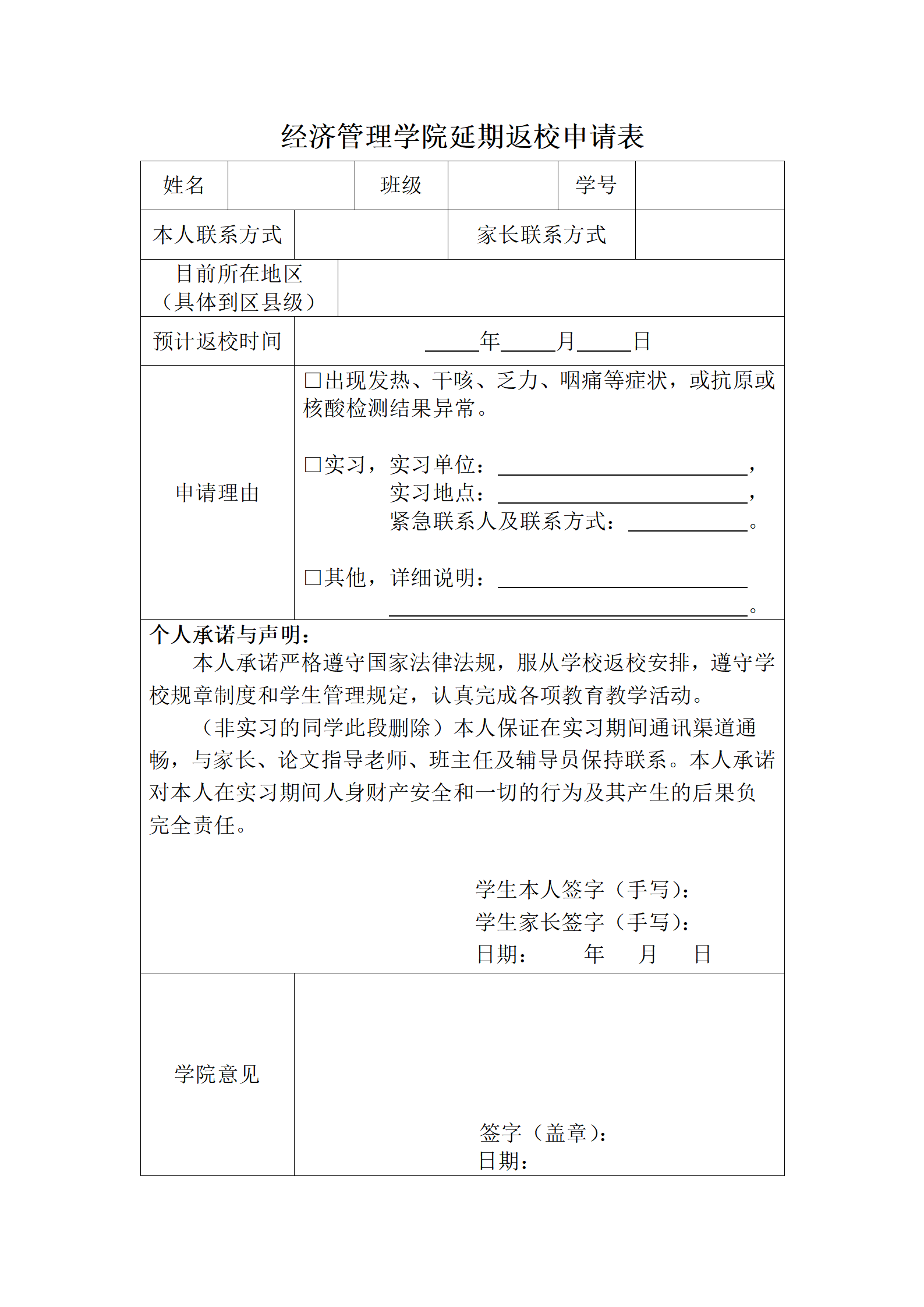工口漫画 延迟返校申请表(2023年2月3日更新)