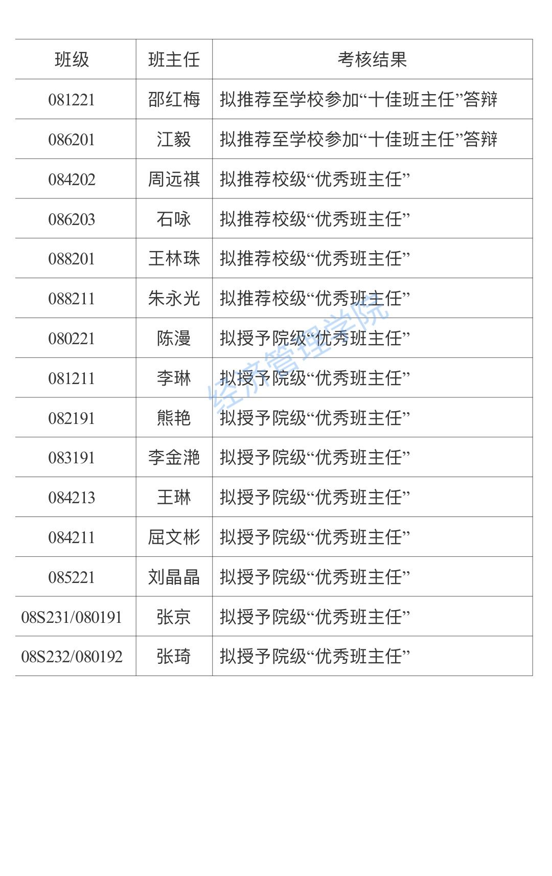 根据《关于开展工口漫画 班主任工作考核的通知》相关要求,学院对全院2019级-2023级所有本科生班级所聘任的班主任进行了年度工作考核,经班主任自评、学生满意度测评及学院评审。现将考核优秀名单公示如下(按班级序号排序):