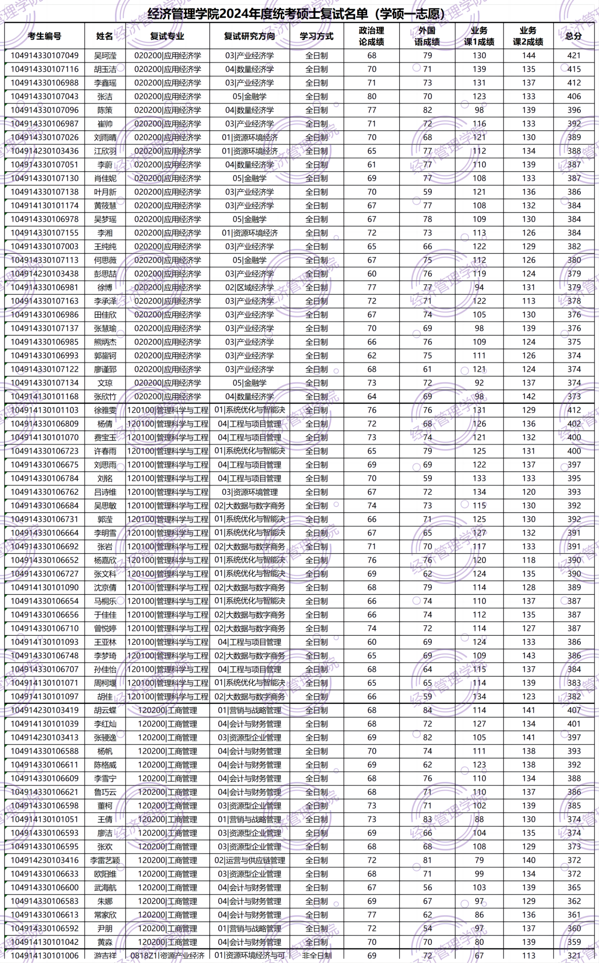 附件1:工口漫画 2024年度统考研究生复试名单(一志愿)_统考硕士初试成绩