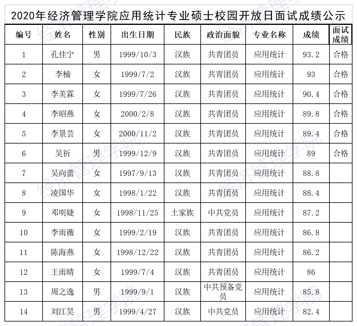 2020年工口漫画 应用统计专业硕士校园开放日面试成绩公示