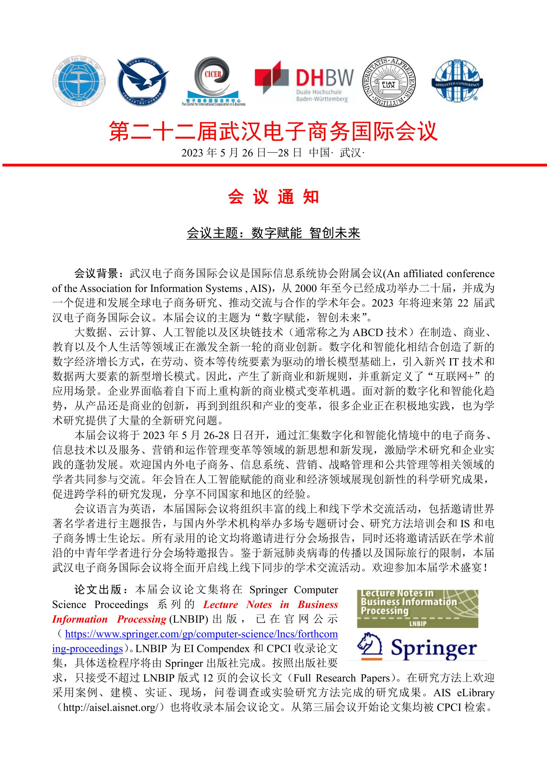 【会议通知】第二十二届武汉电子商务国际会议
