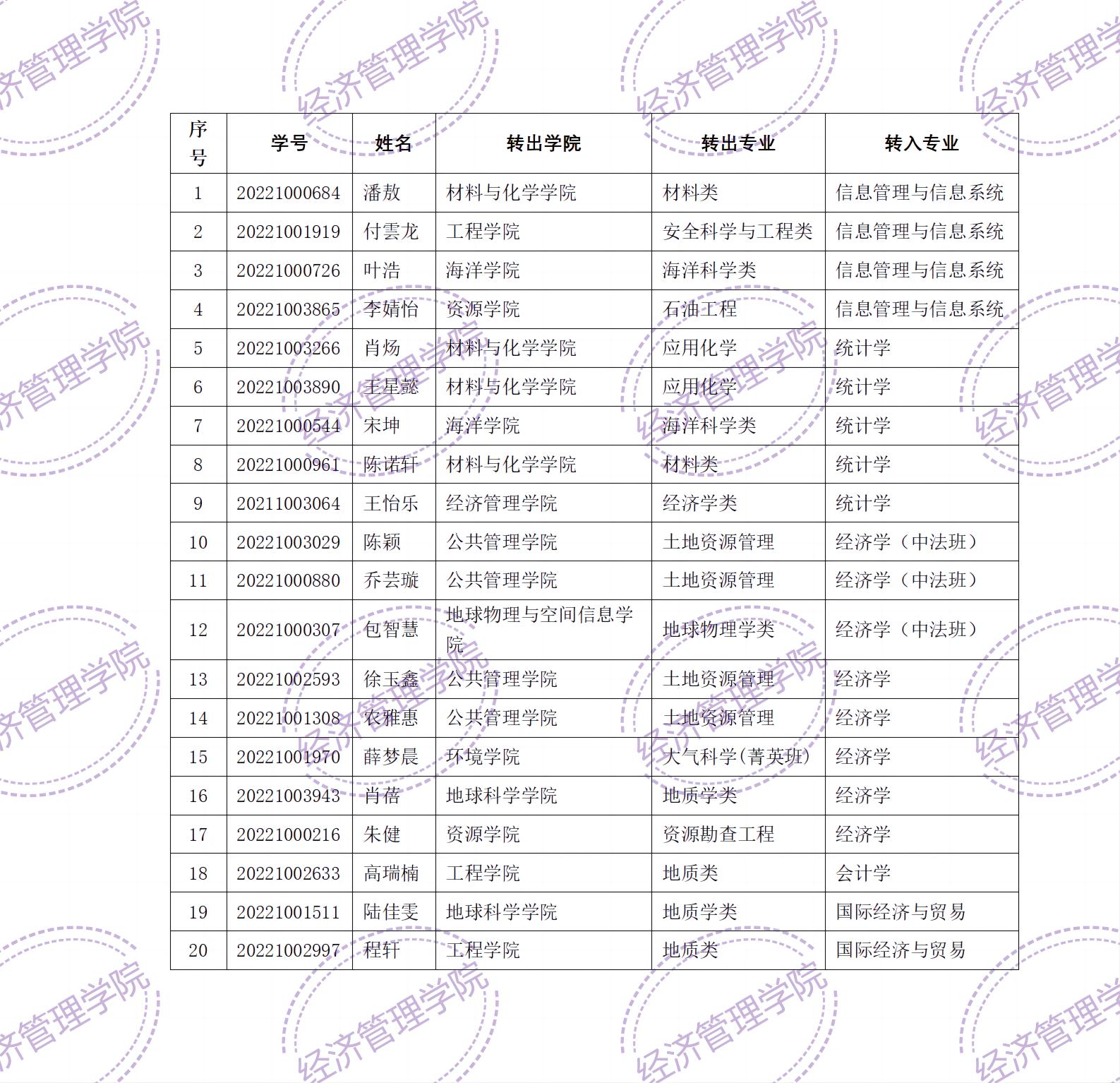依据本科生院《关于2023年进行本科生重新选择专业(大类)工作的通知》要求,并结合学院实际情况,经学生本人申请,学院组织面试考核,经过院党政联席会议讨论,认为这次转入学生整体素质较好,以下同学拟获得进入新专业学习的资格,现公示如下,公示时间为:2023年5月6日—5月9日。