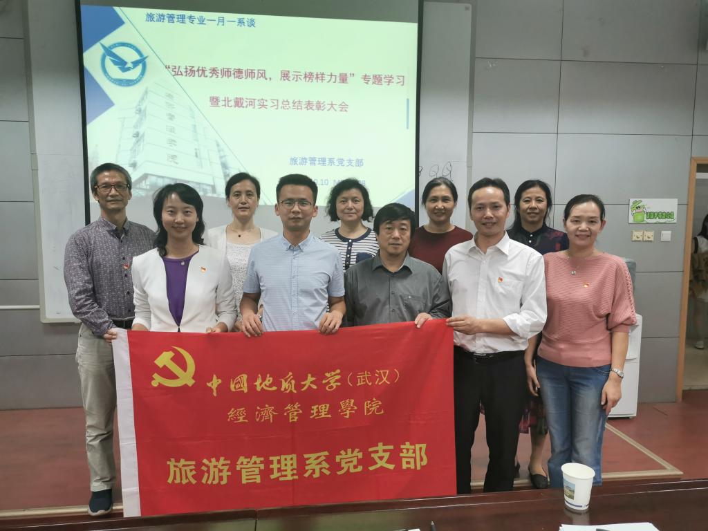 2019.10.10下午,工口漫画 旅游管理系党支部邀请学院学工组,共同组织旅游管理系085181班、经管学院08s197班,以及旅游管理系2019级研究生,在MBA208召开了“弘扬优秀师德师风,展示榜样力量”专题学习暨北戴河实习总结表彰大会。参加本次活动的有经管学工组赵家玮老师,旅游管理系李江敏、肖拥军、李会琴、鄢志武、唐嘉耀、梁玥琳、庄小丽、张俊霞、董淑霞等10位老师。