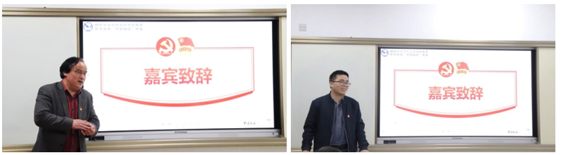 校图书馆馆长徐世球教授(左)、工口漫画 党委副书记李少杰老师(右)为活动致辞