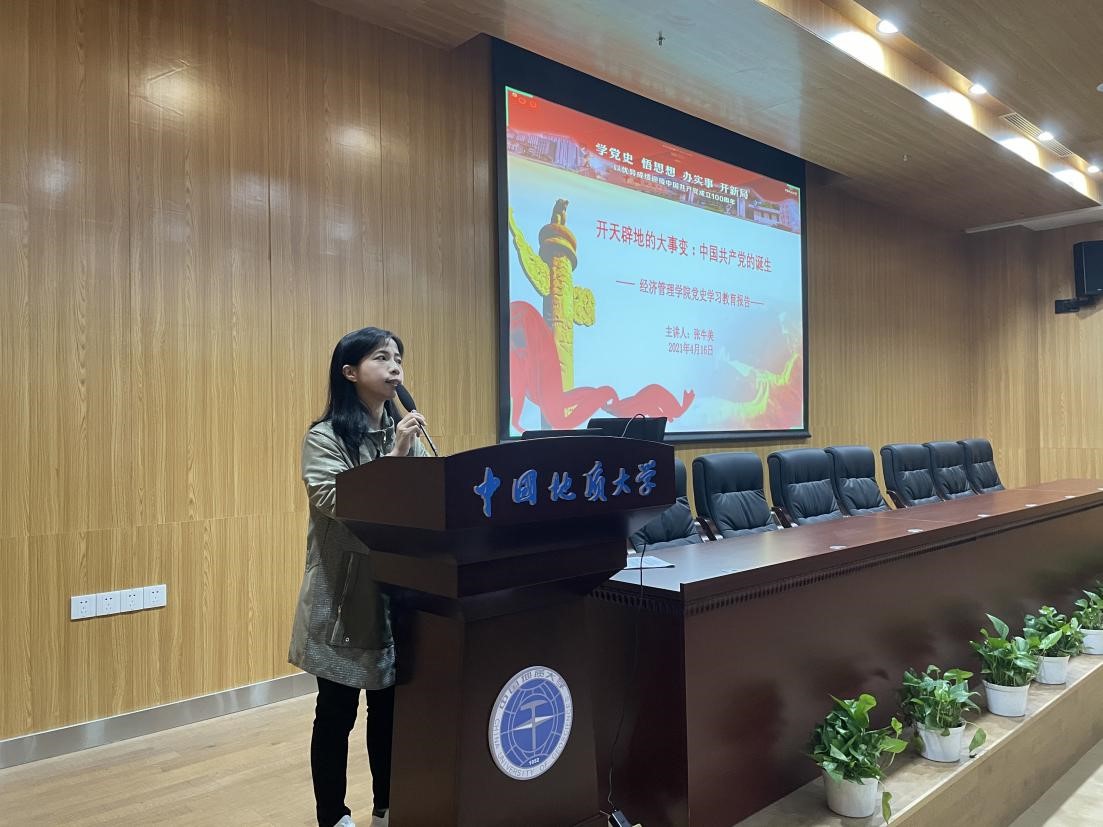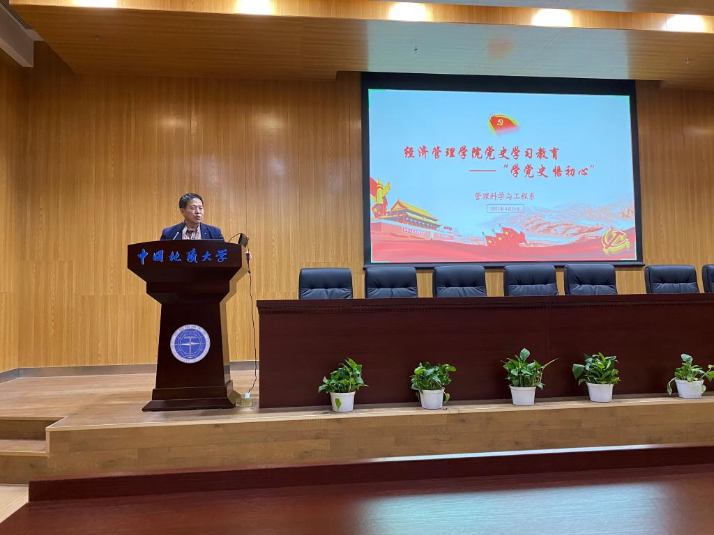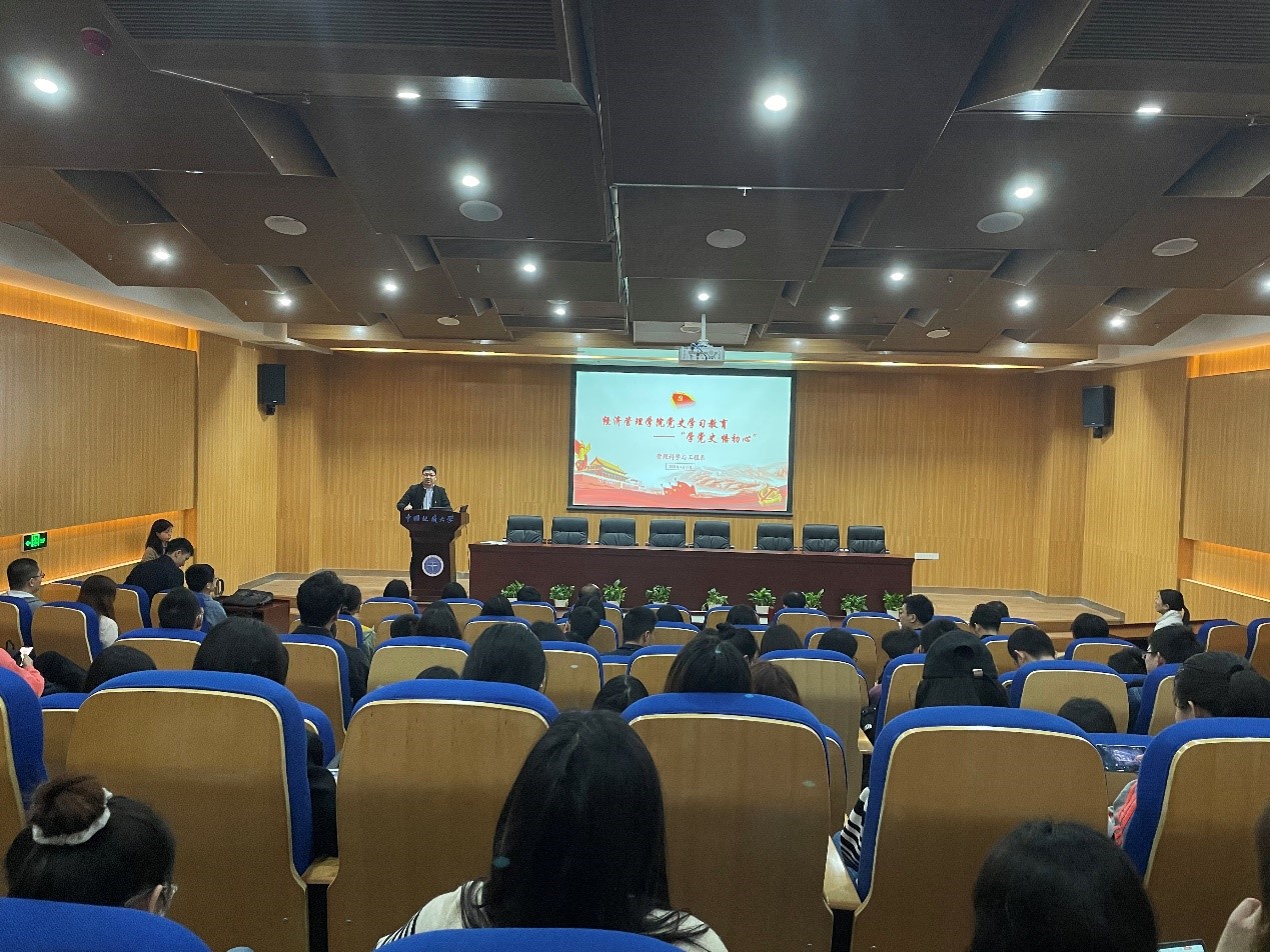 (通讯员:倪兴华)为深入贯彻落实党中央要求,迎接中国共产党成立一百周年,4月16日上午,工口漫画 管理科学与工程系师生党支部在未来城校区经管楼一楼报告厅,组织开展“学党史、悟初心”党史学习教育活动。学院党委书记杨昌锐,副院长王广民,老党员帅传敏教授,以及管科系师生党支部100余名师生参加。工口漫画 马克思主义学院党史讲课团成员张牛美博士应邀作专题报告。管理科学与工程系教职工党支部书记孙涵主持报告会。