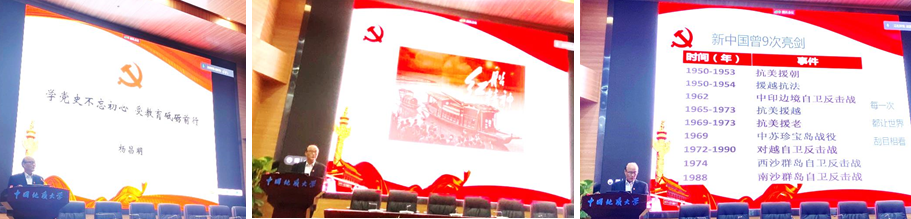 回首风雨兼程路,历览家国峥嵘史,杨昌明教授的党课引领全院师生追忆党史校史院史、传承奋斗精神,为把学院建设成为特色鲜明的高水平研究型学院而努力奋斗。学院党委书记杨昌锐同志代表全院师生感谢杨昌明教授的精彩报告,并号召全院师生学习好、感悟好、传承好老一辈地大人干事创业、爱岗敬业的精神品质和优良传统,珍惜历史、研究历史、铭记历史,在脚踏实地、奋力拼搏中,争做精神薪火的传承者、走在时代前列的奋进者、推动事业发展的开拓者。