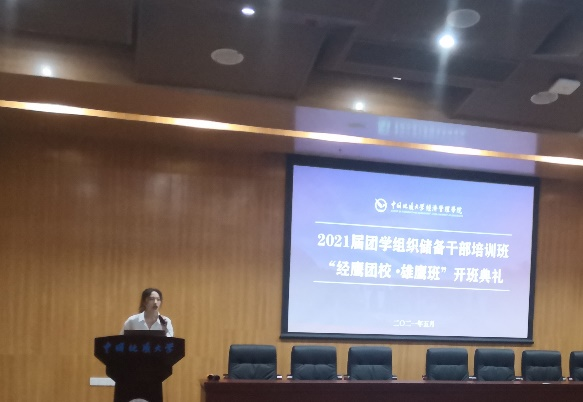 2021年5月22日下午14:00,工口漫画 2021届团学组织储备干部培训班——“经鹰团校·雄鹰班”开班仪式暨团学组织党史学习教育活动在经管楼一楼报告厅召开。出席本次会议的有:工口漫画 党委副书记李少杰老师,院团委书记田昆老师,学工组张弛老师、徐媛老师和徐天宜老师,学生会主席团成员及2021届储干班全体成员。