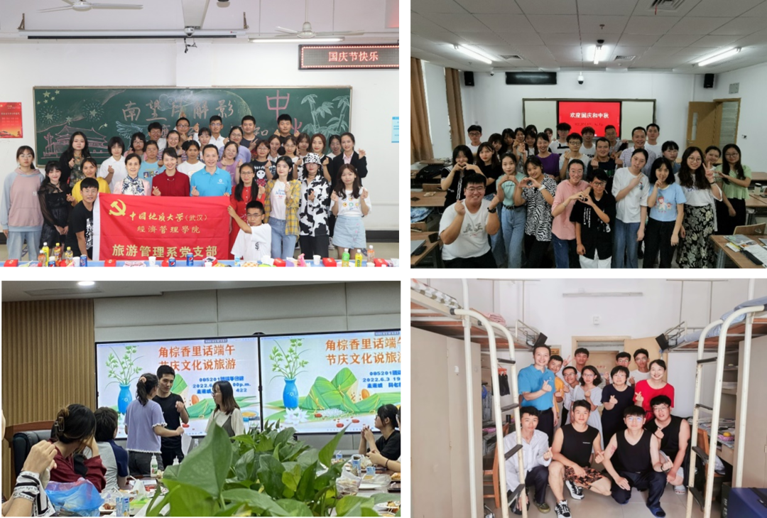 旅游管理系党支部始终秉承以一流党建引领一流专业发展理念,多次获得学校“先进基层党组织”称号,入选教育部首批“全国党建工作样板支部”。旅游管理专业获批国家级一流本科专业建设点、首批国家级一流课程、湖北高校优秀教学基层组织、校教学成果特等奖。结对领航班级获“五四红旗团支部标兵”“先进班集体标兵”“湖北省社会实践活动优秀团队”。近五年来,支部教师共承担国家自科、社科基金项目7项,省部级项目4项;出版专著、教材12部;获批教学研究项目15项,以实际行动发挥先锋模范作用。