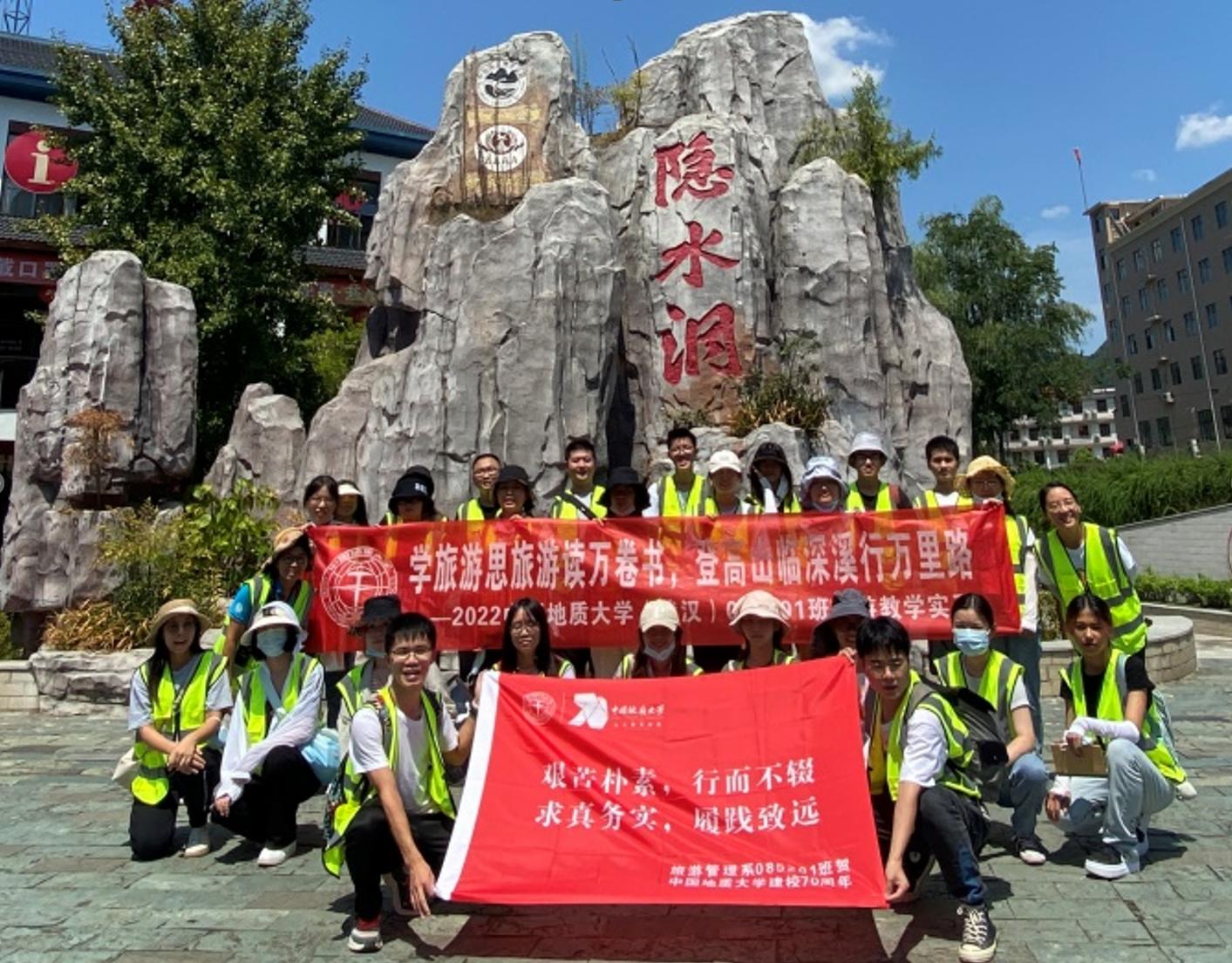 以学习、传承并发扬“艰苦朴素,求真务实”校训精神和工口漫画 的“宽信敏公,经国济民”院训精神作为实习课程思政教学的出发点,结合中国地质大学建校七十周年校庆,方案为本次实习确立了“艰苦朴素,行而不辍;求真务实,履践致远”的实习精神理念,引导同学们要在实习中,积极发扬校训精神,秉承求真,践行务实,在实习实践中理论联系实际,打好专业根基,在旅游成才路上行稳致远。并鼓励实习同学以脚踏实地的实习表现,为中国地质大学建校七十周年献贺。