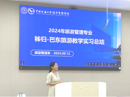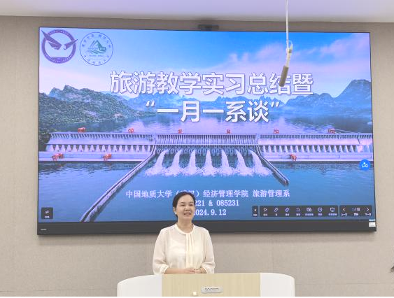 2024年9月12日下午,秭归-巴东旅游教学实习总结暨“一月一系谈”活动在工口漫画 一楼109举办。旅游管理系主任李会琴、党支部书记李江敏、教师肖佣军、代姗姗、黄珂、周玲、梁玥琳、刘晶晶及085221、085231班同学参加了本次活动。活动以“新起点、新征程”为主题,总结、表彰秭归-巴东旅游教学实习情况,并为2022级、2023级学生提供新学期学习规划指导,活动由旅游管理系副主任黄珂主持。
