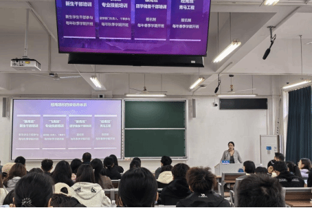 徐媛系统介绍了学院“经鹰团校”培养体系,讲解了新生干部“雏鹰班”培训内容、方式和要求。本次“雏鹰班”课程设计涵盖思想理论、团务基础、实务技能等多个方面,采用集中学习和实务工作坊相结合的方式,注重案例分析和实操训练,参训学员要认真完成任务,实现理论水平和实践能力同步提升。