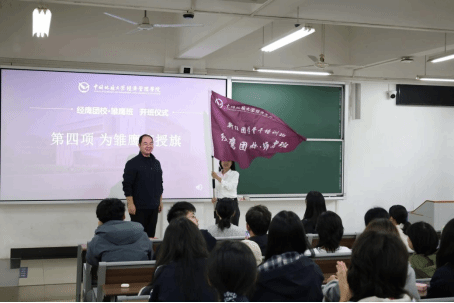李纪亮向学员代表授予“雏鹰班”班旗,激励同学们在学习和工作中锤炼自我,勇担重任。