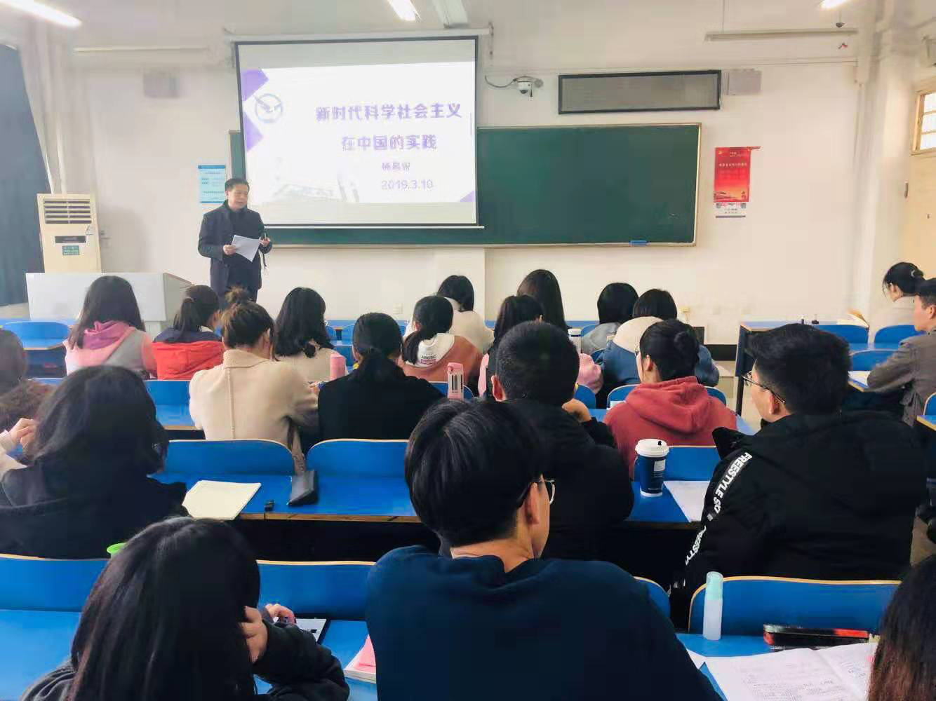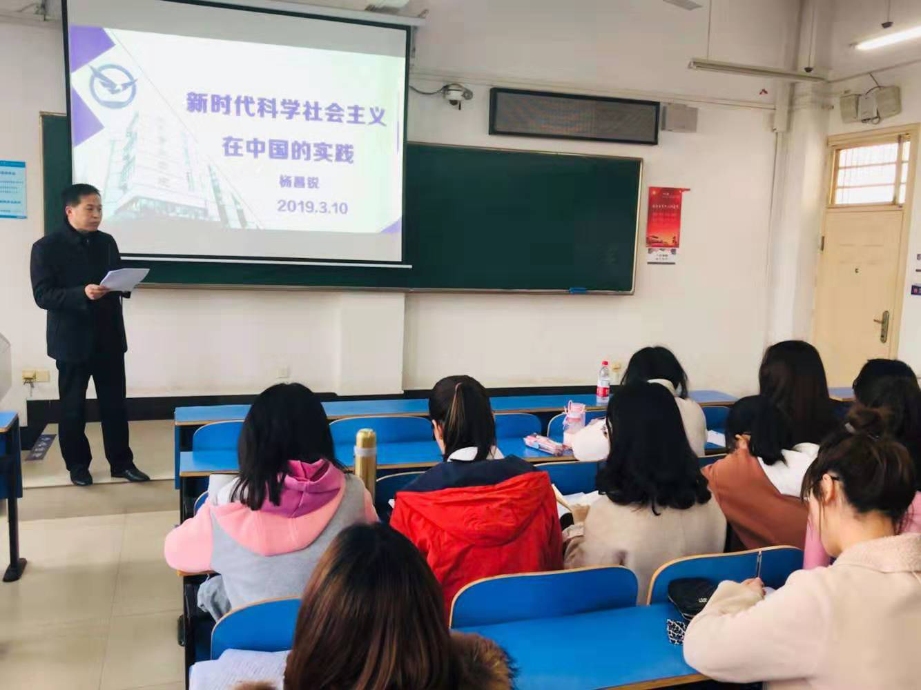 2019年3月10日下午2点,工口漫画 第九期发展对象培训班课程在北区综合楼208教室如期举行,学院党委书记杨昌锐以“新时代科学社会主义在中国的实践”为主题为学员授课,30余名学生党员发展对象参加党课。