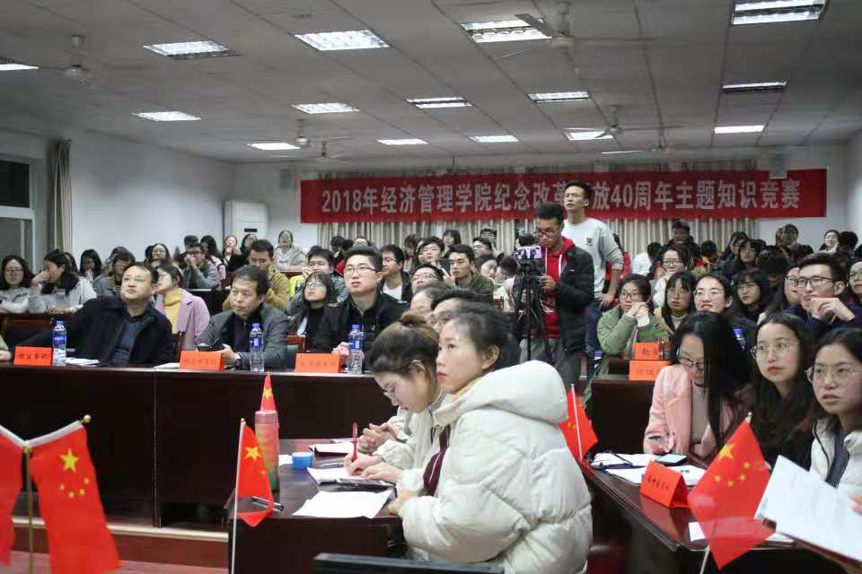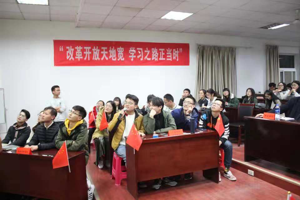 (学院党建办公室:王洁彬)2018年11月22日晚7:00,由工口漫画 党委主办、学院党建办公室承办的“改革开放天地宽,学习之路正当时”——纪念改革开放40周年主题知识竞赛活动在MBA楼208室如期举行。出席本次活动的嘉宾有:学院党委书记杨昌锐老师、学校党委组织部马洪福老师、学院党委副书记沈波老师、学院管理科学与工程系教职工党支部书记孙涵老师、学工组全体老师;全体学生党员到场观看学习。