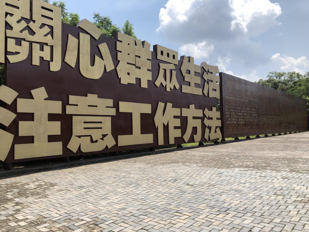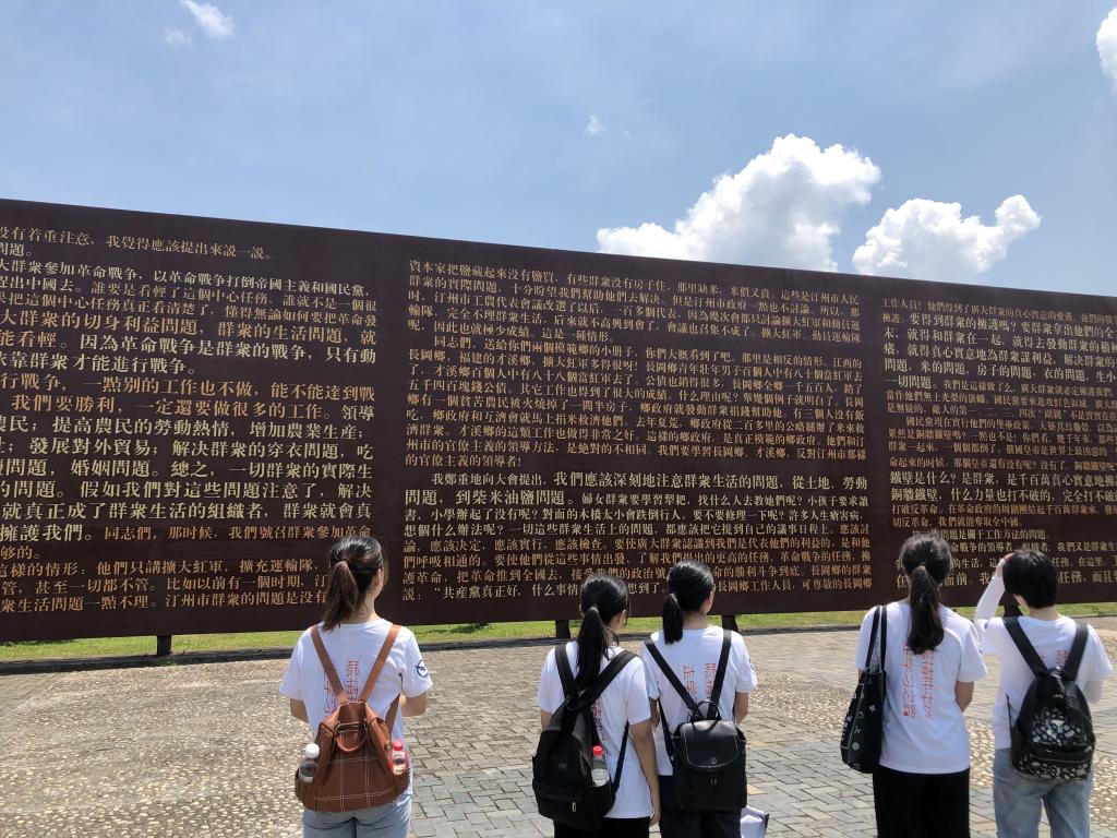 “真正的铜墙铁壁是什么?是群众,是千百万真心实意地拥护革命的群众。这是真正的铜墙铁壁,什么力量也打不破的,完全打不破的…..”骄阳烈烈,群青寂寂,回荡在偌大群众路线广场上的,只有我们诵读的声音。读这面宏伟静默伫立的《关心群众生活,注意工作方法》 著作雕塑墙,正是我们忆读当年苏区干部心系人民疾苦、践行群众路线的历史故事,品读中国共产党与人民的深厚鱼水之情,悟读至今仍闪耀真理光芒的毛泽东思想的心灵洗礼。